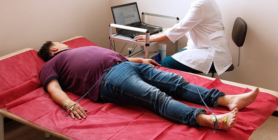 Процедура короткая и обычно не вызывает дискомфорта. Пациент ложится на кушетку (чаще на спину), старается расслабиться и спокойно дышать. На кисть и стопу устанавливают одноразовые электроды, подключенные к аппарату и компьютеру.