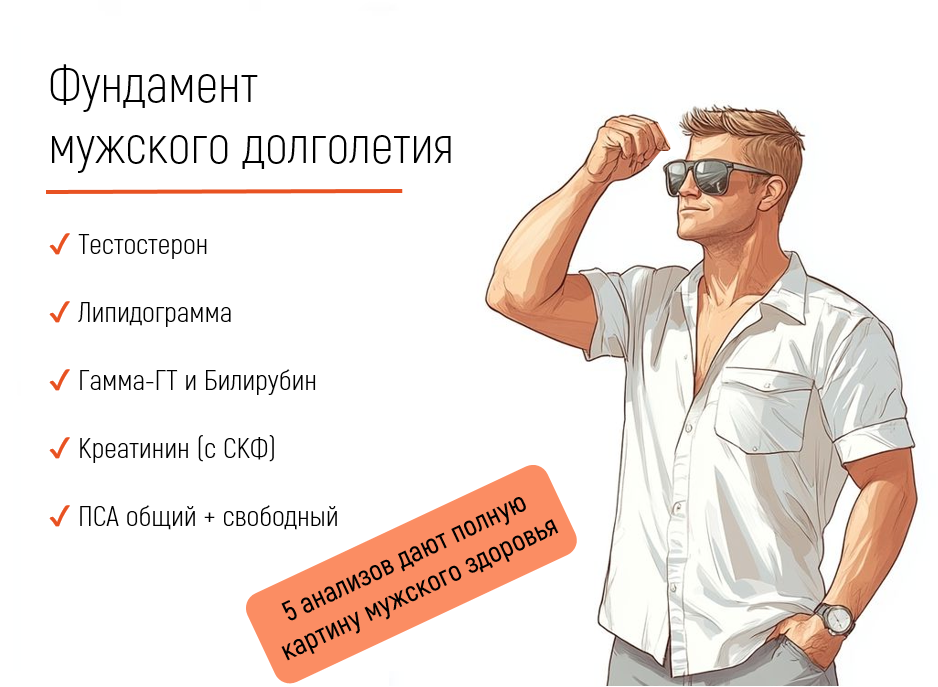 Мы собрали в рамках одного комплекса ключевые показатели, которые действительно стоит проверить каждому мужчине, чтобы оценить запас прочности своего организма: