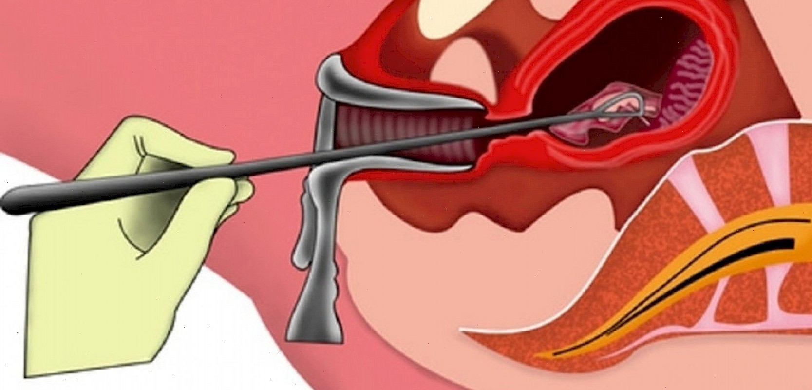 - Выявление гинекологическим зеркалом положения шейки матки, фиксация и расширение специальными инструментами.